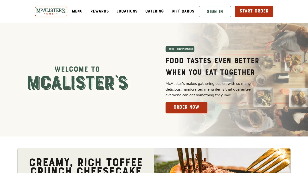 Screenshot of McAlister's Deli website